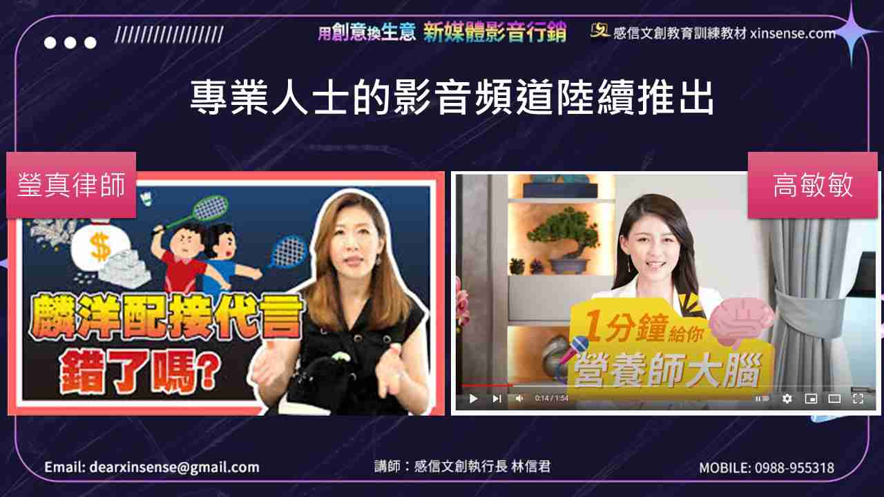 醫師、律師等專業人士也陸續在YouTube經營自己的頻道,拍影片分享專業。