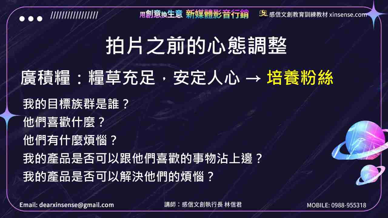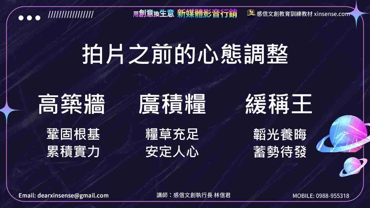 這九字真言你先想清楚,融會貫通,可以讓你拍出吸睛有感的影片,幫助你在網路打天下。