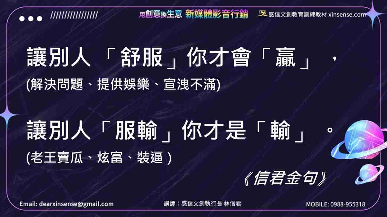 讓別人「舒服」你才會「贏」,讓別人「服輸」你才是「輸」。《信君金句》